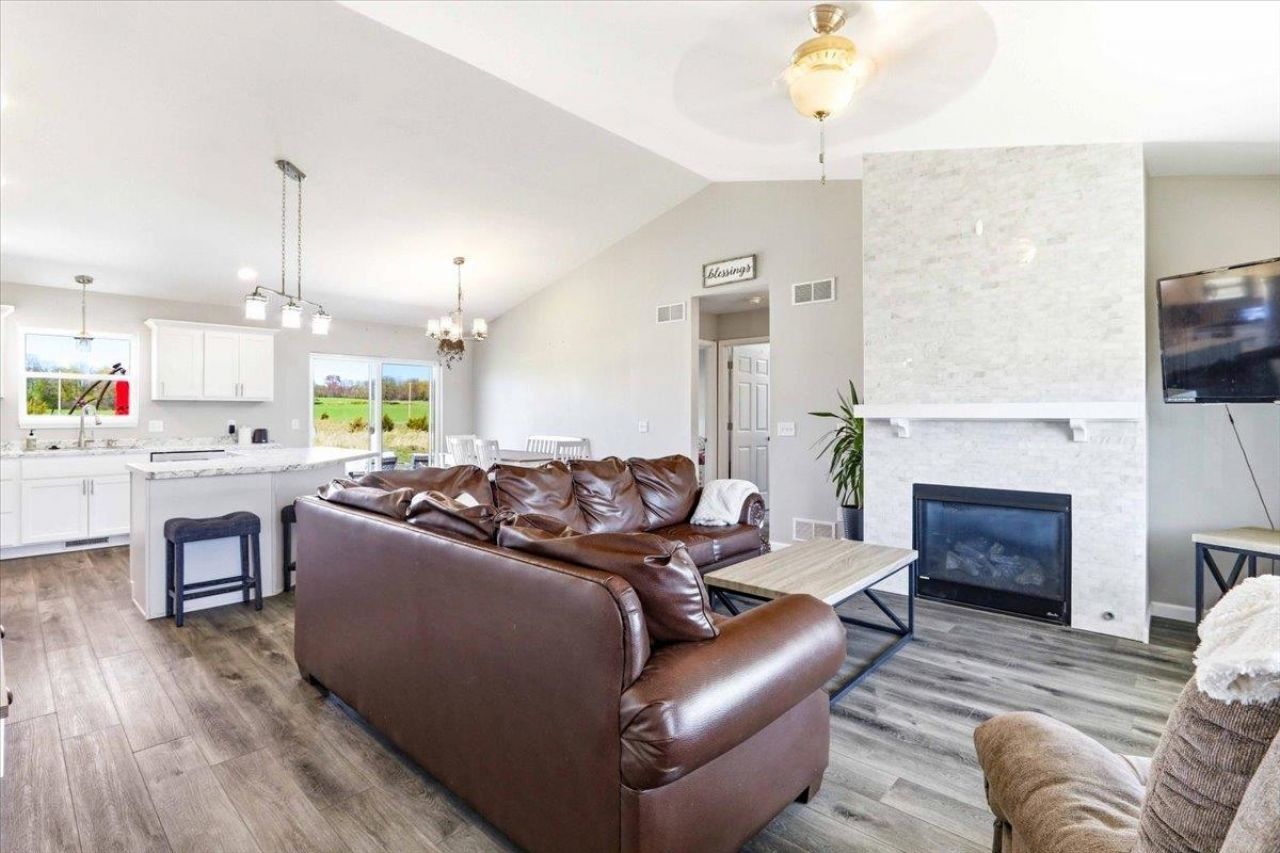 Welcome to effortless living in the City of Baraboo; where small-town charm meets everyday convenience. This beautiful 5 bed, 2 bath home, built in 2020, offers peace of mind of newer construction. Step inside to an inviting open-concept layout filled with natural light, enhanced with vaulted ceilings and a bright color palette. The kitchen, dining, and living areas flow seamlessly together, making daily living feel easy and connected. Unwind in front of the cozy gas fireplace or take it downstairs in the spacious rec room; ideal for get-togethers, movie nights, or game day. The basement is stubbed for a third full bathroom offering room to grow and customize. Outside, enjoy relaxing evenings or weekend grilling on a spacious concrete patio with no rear neighbors. The 2 car attached garage includes additional storage space, adding to the home's functionality. Located in a highly desirable, walkable neighborhood, this home puts you close to everything that makes Baraboo special.