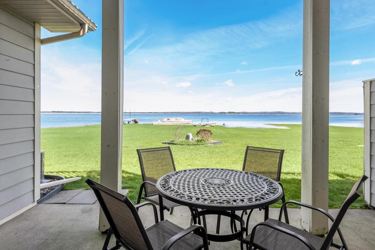 Set on the shores of Lake Puckaway, this exceptional condo offers easy luxury and views that stretch for days. Open living spaces invite effortless entertaining, anchored by a stunning floor to ceiling stone fireplace with custom built ins. Three bedrooms and 2.5 baths provide comfort for all, while the primary suite opens to a private upper patio overlooking the water. Step outside to level frontage, your own pier, and a beautifully maintained pool and pool house. From the living room, patio doors lead to the lake and lush lawn. Tucked in the charming town of Marquette, surrounded by nature, this is a truly special place to call home. Call today to make your dreams of lake living come true.